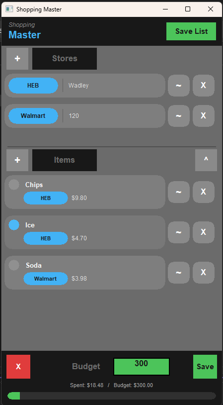 ShoppingMaster is a clean, minimal UI tool for building and optimizing your shopping list. With alphabetical sorting, temperature tracking, and simple item management, it keeps your groceries organized and your cold items fresh.