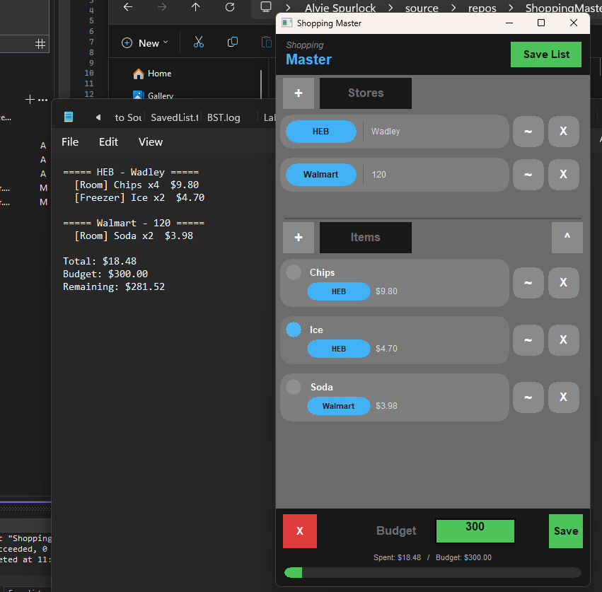 ShoppingMaster is a lightweight C++ console tool designed to help you build, organize, and optimize your shopping list with clarity and efficiency. It sorts your items by store and item name (both alphabetically), tracks each item’s temperature category, and ensures your groceries stay as fresh as possible by the time you get home.
